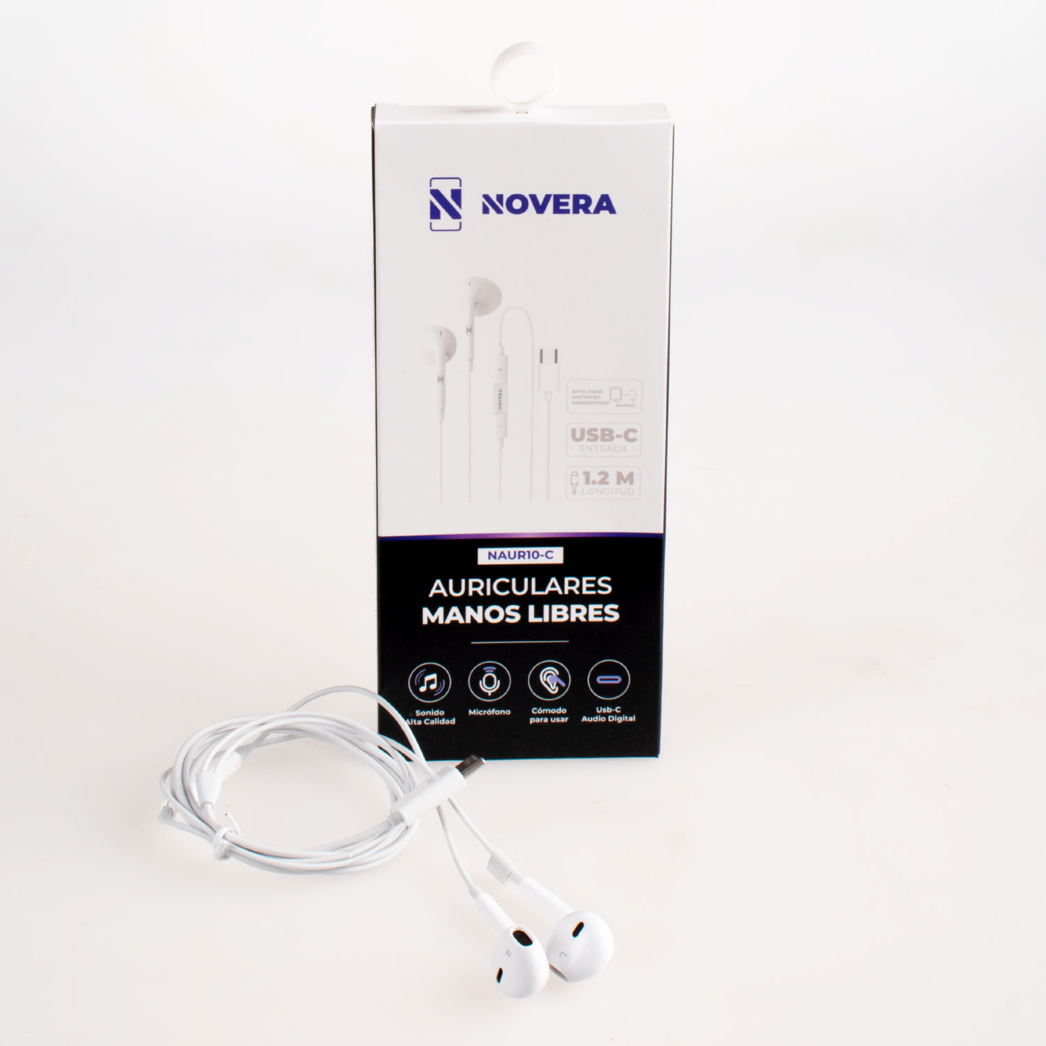 Auriculares con cable de 120 cm y enchufe USB-C, fusionando un diseño compacto de 108 x 35 x 188 mm en elegante ABS y alambre TPE. Disfruta una conexión moderna y cómoda.