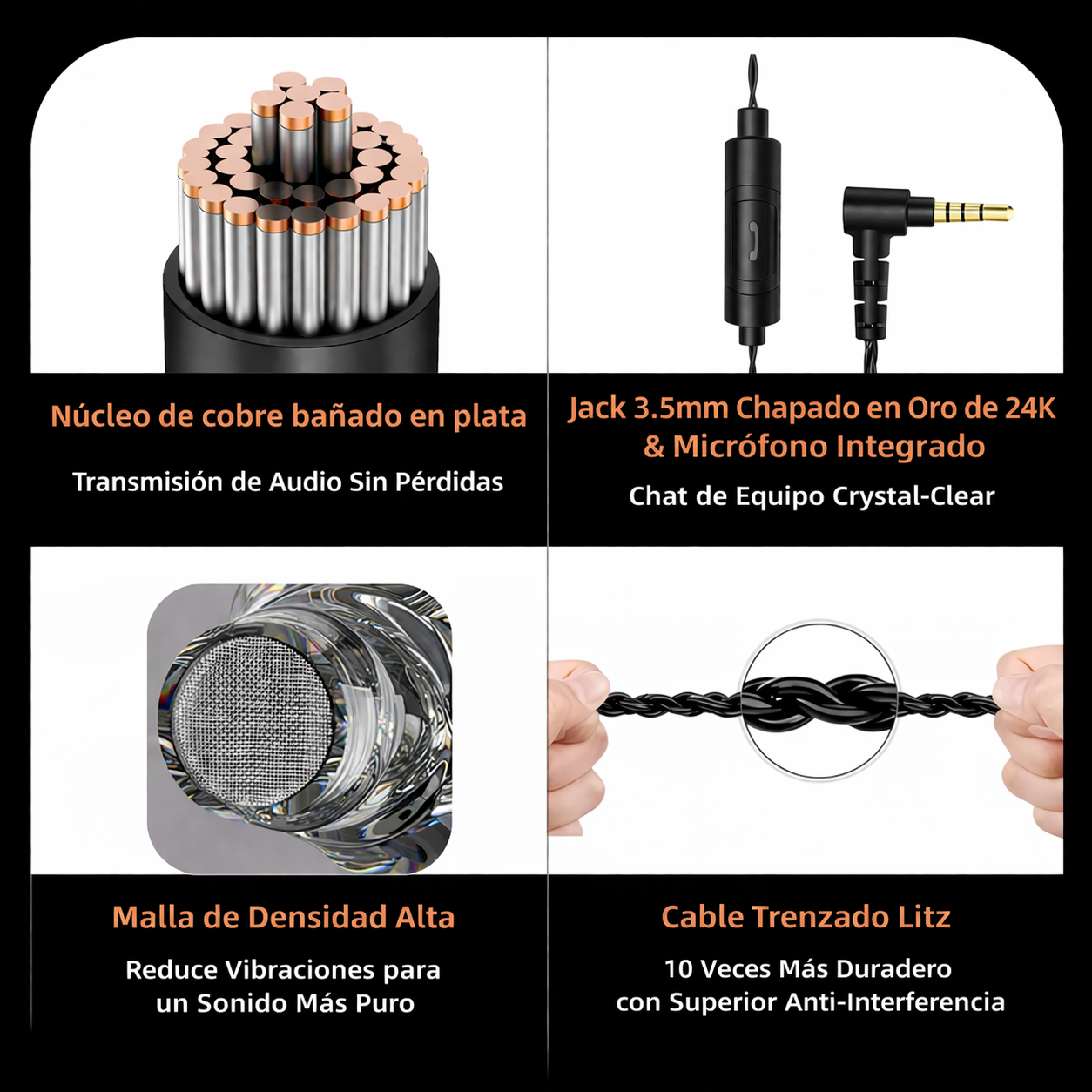 Gran cancelación de ruido: Los auriculares IEM utilizan tecnología de aislamiento acústico, evitan que el ruido exterior interfiera con tu experiencia auditiva, y los monitores intraauriculares permiten escuchar a volumen bajo manteniendo detalles nítidos.