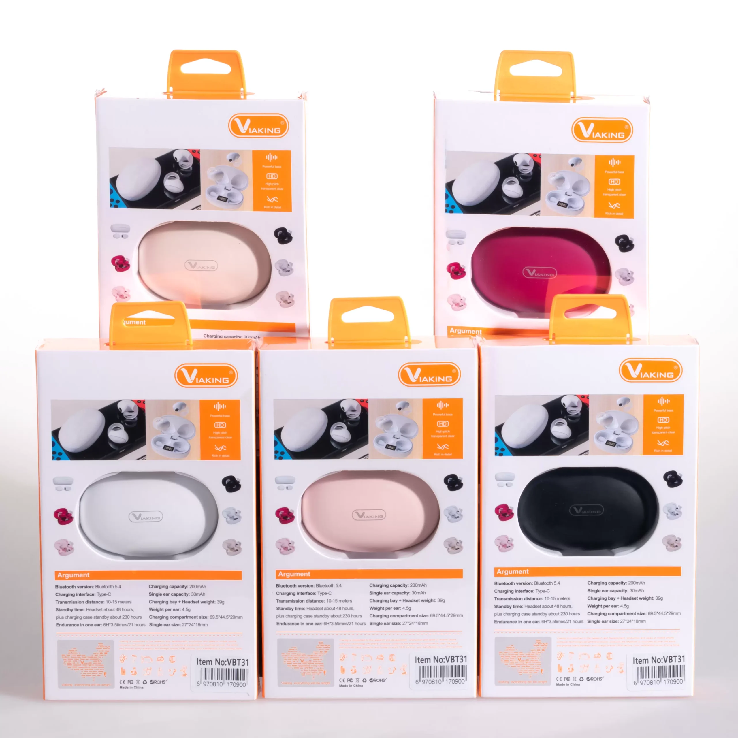 Auriculares Bluetooth con carga rápida Type-C y hasta 21 horas de duración. Con una transmisión de 10-15 metros y una batería de 30mAh por auricular, ofrecen hasta 6 horas de uso continuo.