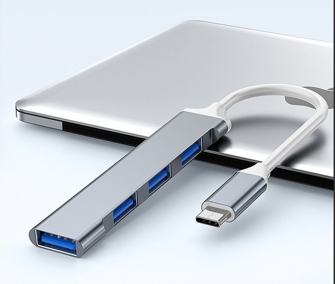 Hub Multiplicador Adaptador USB-C a USB-A x4 para ampliar la cantidad de puertos disponibles en su equipo, sea una portátil/notebook o computadora de escritorio con puerto USB-C disponible.